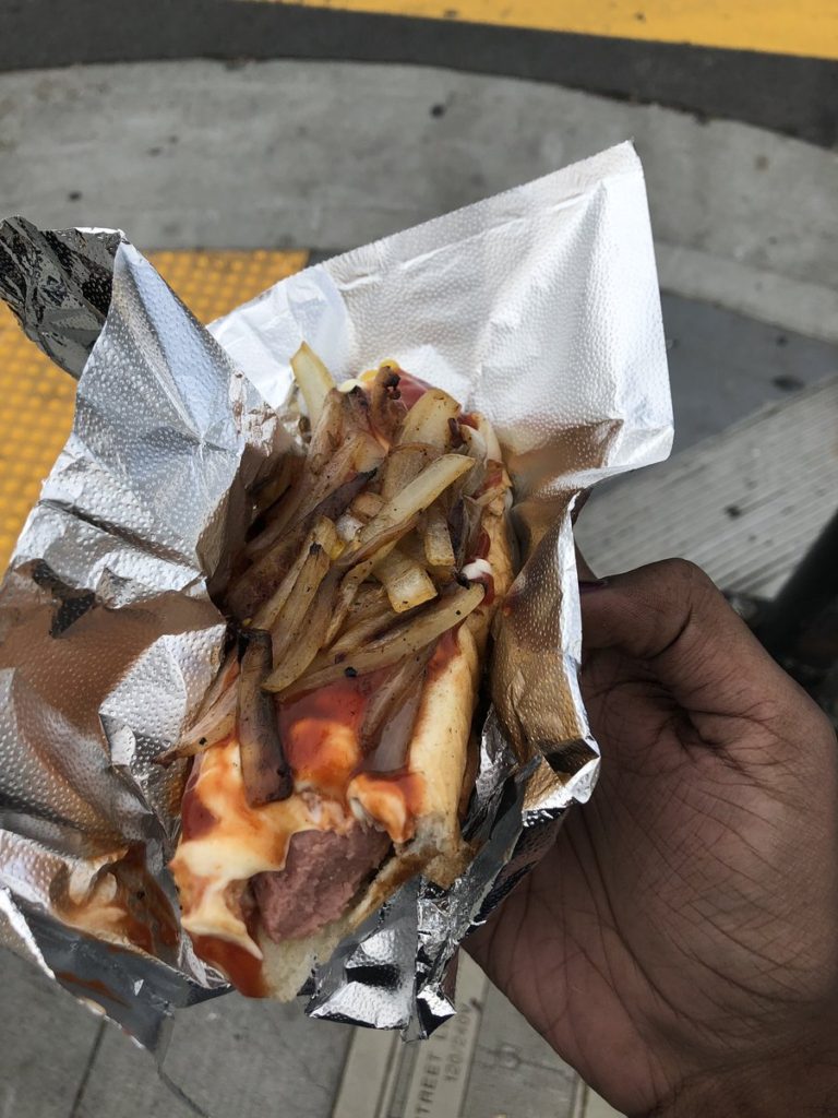 Along the way, I spotted a street hot dog vendor, and decided that I had to have a hot dog. (It was delicious!) I tried to make small talk with the vendor, asking him how long he had been making hot dogs. But the vendor didn’t seem to be comfortable speaking in English.