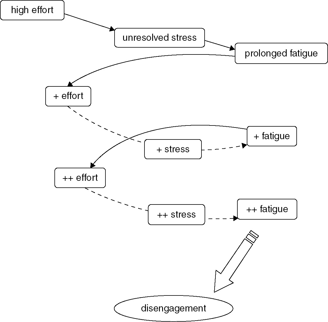 I can’t remember where I found this one, but I must have been searching a few related phrases like “fatigue spiral”.
