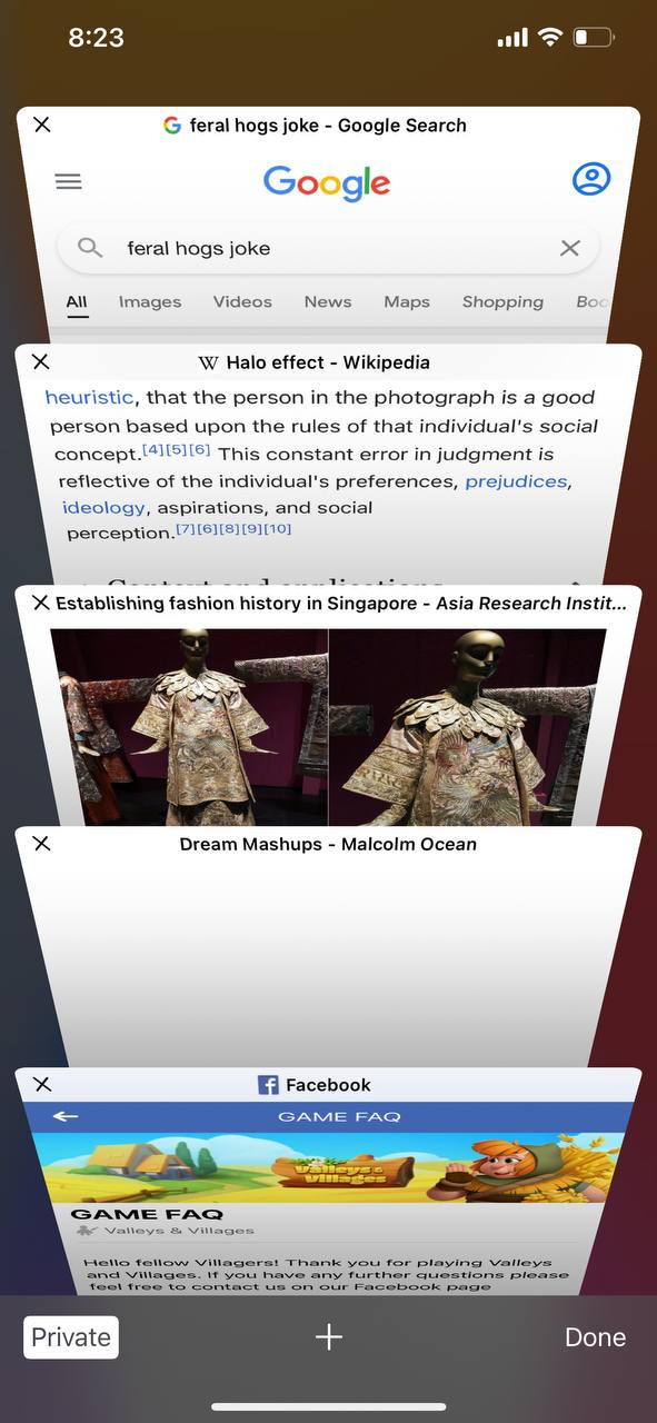 This might seem odd but it totally works: say “let me check”, then open up your phone browser and look for the last thing you can talk about, and then talk about that. For example, here’s one of mine: “oh I was reading about the history of fashion in SG recently…”